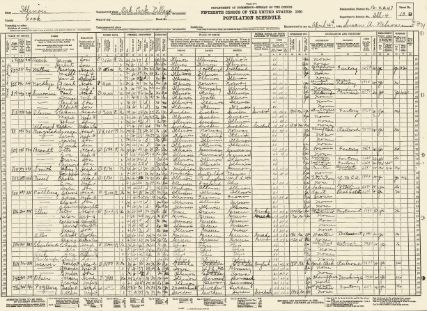 Si eran una “ama de casa." Aunque muchos censos incluyen preguntas sobre empleo, el Censo de 1930 también preguntó si había una “ama de casa" en la dirección. Si era así, los enumeradores (encuestadores) lo listaban como la ocupación de la persona, generalmente una mujer. Esto refleja el auge de las clases de ciencias domésticas en las escuelas secundarias y la idea de que las tareas del hogar eran habilidades que debían ser estudiadas.